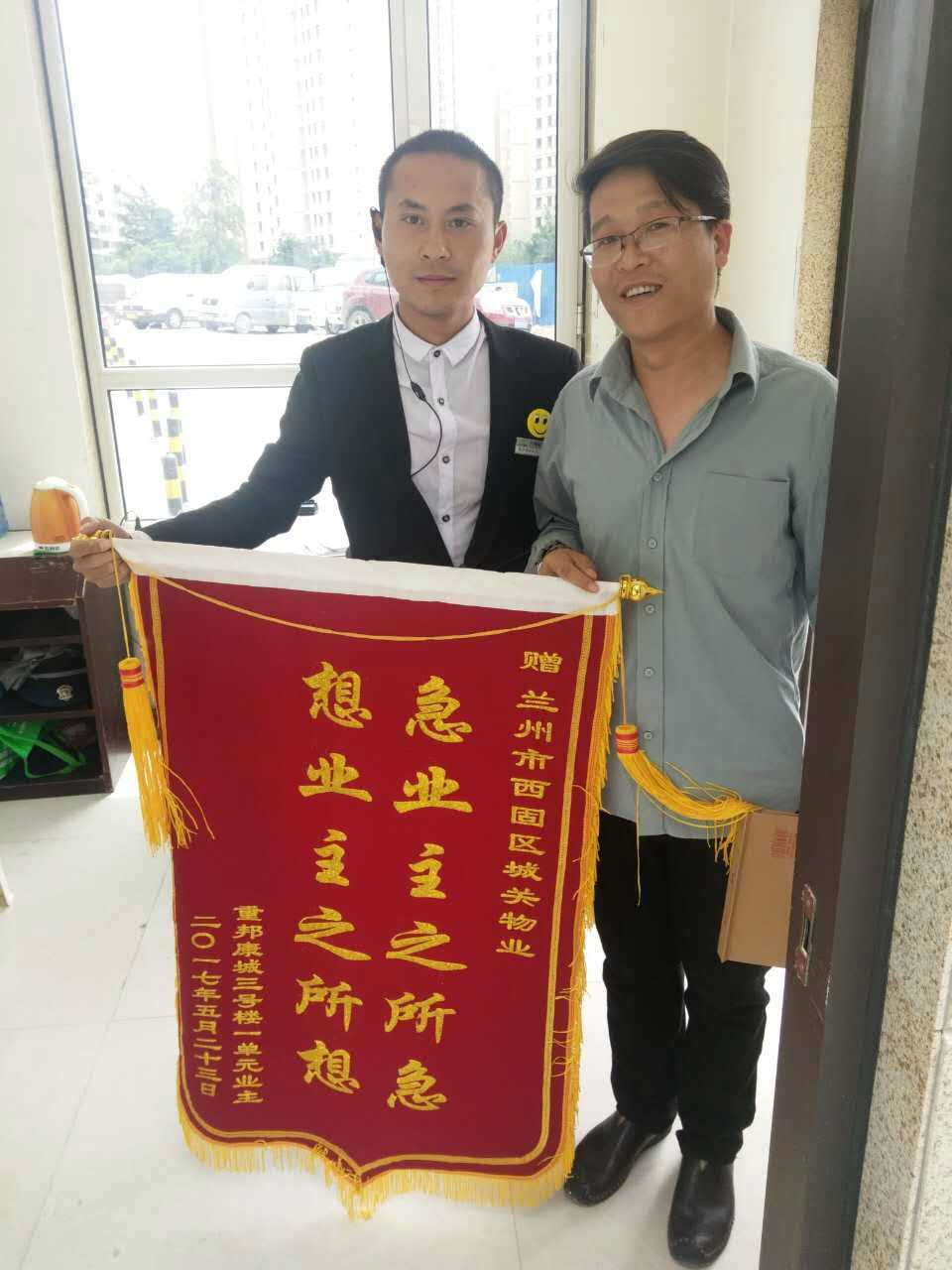 5月24日上午11點(diǎn)左右,重邦康城小區(qū)一戶業(yè)主將一副題為“急業(yè)主之所急,想業(yè)主之所想”的錦旗送到了物業(yè)辦公室,感謝物業(yè)人員在干好本質(zhì)工作的同時(shí),積極熱心的幫忙尋找自家的小狗。該業(yè)主強(qiáng)調(diào),自從入住這個(gè)小區(qū)以來(lái),每一天都過(guò)的很舒心,城關(guān)物業(yè)工作人員專(zhuān)業(yè)素質(zhì)強(qiáng),服務(wù)熱情周到。在得知小狗丟了的情況下,積極主動(dòng)的安排人員幫忙尋找,并最終找到小狗。感謝城關(guān)物業(yè)提供如此優(yōu)質(zhì)、貼心、專(zhuān)業(yè)的服務(wù)。田曉晨經(jīng)理說(shuō)道,業(yè)主的事不論大小,只要有需要,我們定會(huì)全力以赴。