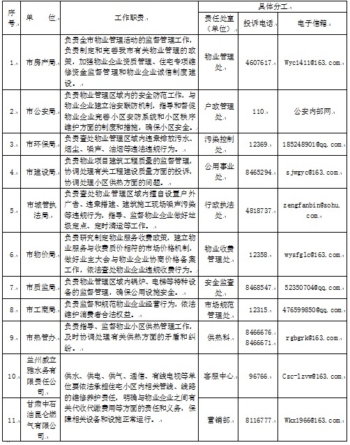 蘭州市物業(yè)管理相關(guān)責(zé)任單位及投訴電話公示