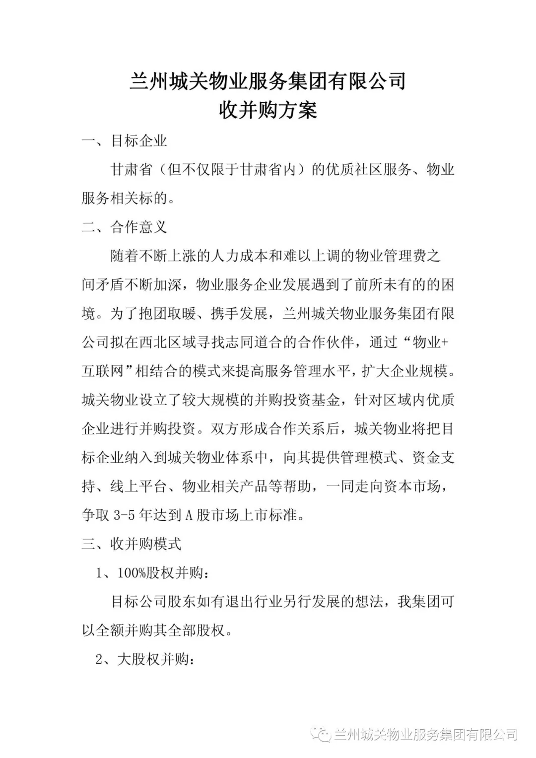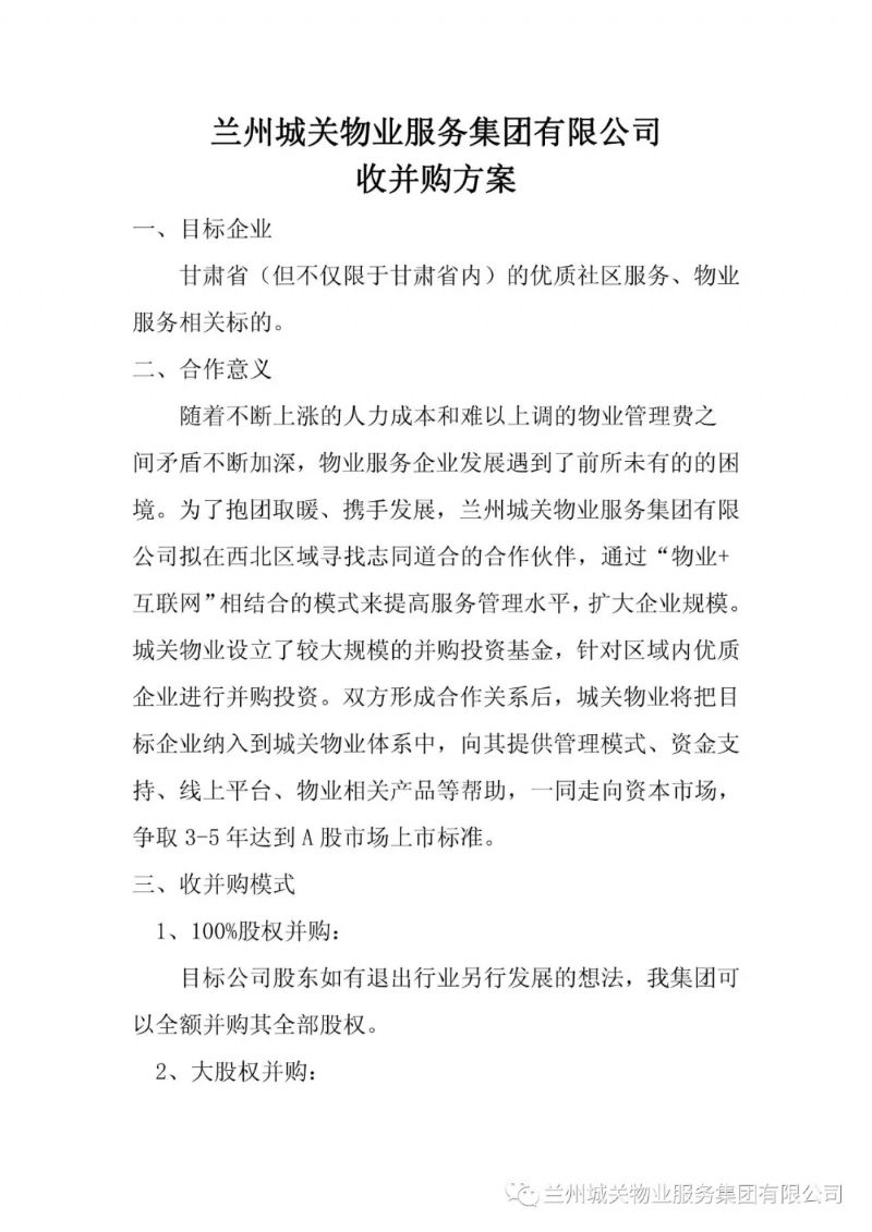 蘭州城關(guān)物業(yè)服務集團有限公司收并購方案