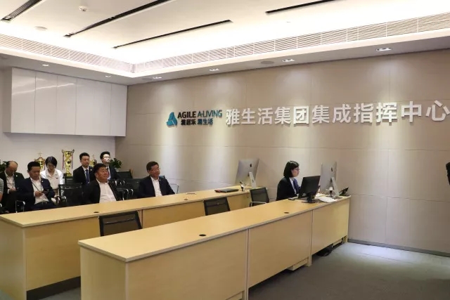 在雅生活集團(tuán)總裁劉德明一行的陪同下,董事長楊民召參觀了雅居樂集團(tuán)展廳、雅生活集團(tuán)展廳、雅生活集團(tuán)集成指揮中心、雅居樂中心避難層、停車場等地方,深入了解雅居樂集團(tuán)、雅生活集團(tuán)的“1+N”多元化發(fā)展戰(zhàn)略和雅生活集團(tuán)智慧物業(yè)建設(shè)成果。