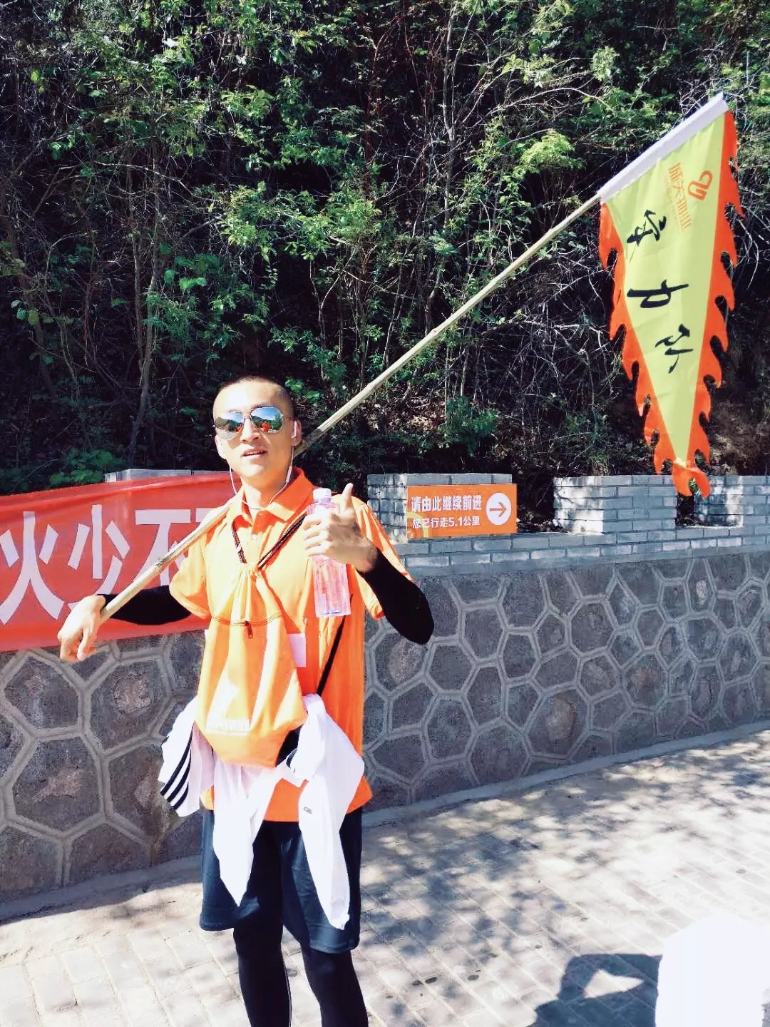 大家身著代表著企業(yè)的橙色上衣,肩扛代表各隊(duì)的旗幟,
