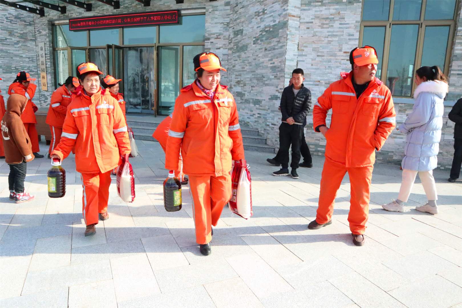 康樂縣園林局領(lǐng)導(dǎo)在仔細(xì)詢問了員工的工作和生活情況后,對大家的辛勤付出表示了肯定和感謝,將新春慰問品送到每一位物業(yè)員工的手中,并一再提醒大家:一定要注意身體,合理安排好作息時間。我們的員工在感受到親切問候和關(guān)懷后,無比振奮,滿臉笑容。雖然寒風(fēng)陣陣,但是心里卻是暖洋洋的。