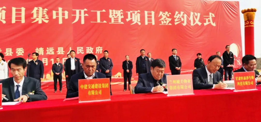 甘肅省白銀市靖遠縣2021年重點項目集中開工儀式暨項目簽約儀式舉行,白銀市委書記蘇君,市委副書記、市長張旭晨,市人大常委會主任宋奮吉,市委副書記、市委統(tǒng)戰(zhàn)部部長張延保出席開工儀式。蘭州城關(guān)物業(yè)服務集團有限公司董事長楊民召參與儀式。