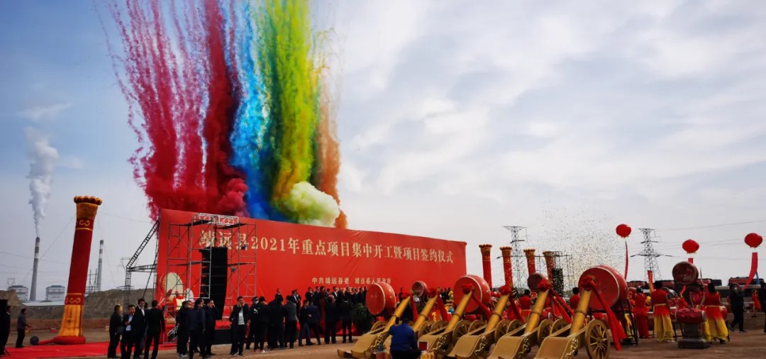 儀式現(xiàn)場開工項目共54項,涉及能源開發(fā)、基礎(chǔ)設(shè)施、綠色工業(yè)、文旅融合、農(nóng)業(yè)升級等多個領(lǐng)域。共簽約項目15個,簽約總金額212.8億元。白銀市委書記蘇君表示,希望通過這次簽約,引進一些優(yōu)秀企業(yè),增加農(nóng)戶收入,推進鄉(xiāng)村產(chǎn)業(yè)扶貧,帶動靖遠縣經(jīng)濟發(fā)展。